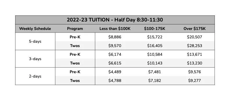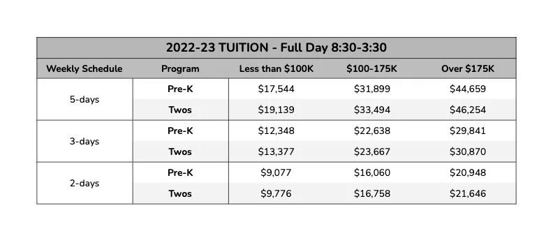 We're proud to offer sliding scale tuition rates for families and flexible corporate plans for employers of all sizes.