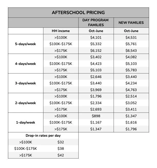 We run all of our programming on a sliding scale based on household income. This allows us to have tuition reduction built into our tuition model so that right off the bat our programs include and support economic diversity.